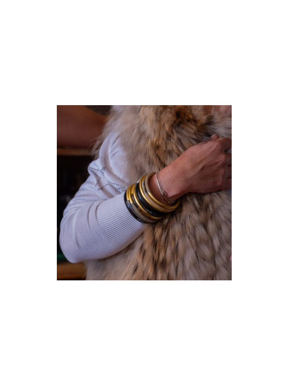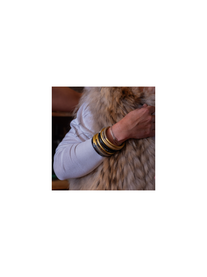 Brazalete fino de cuerno natural parcialmente lacado en color.