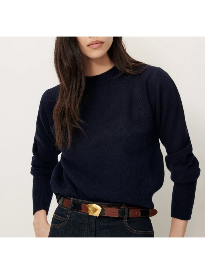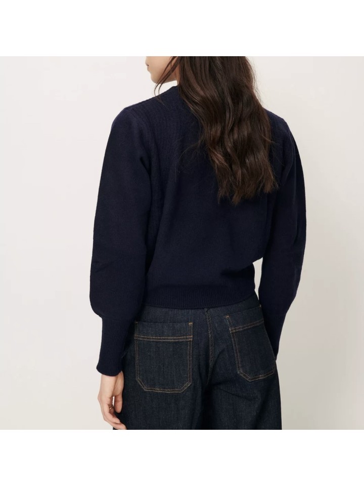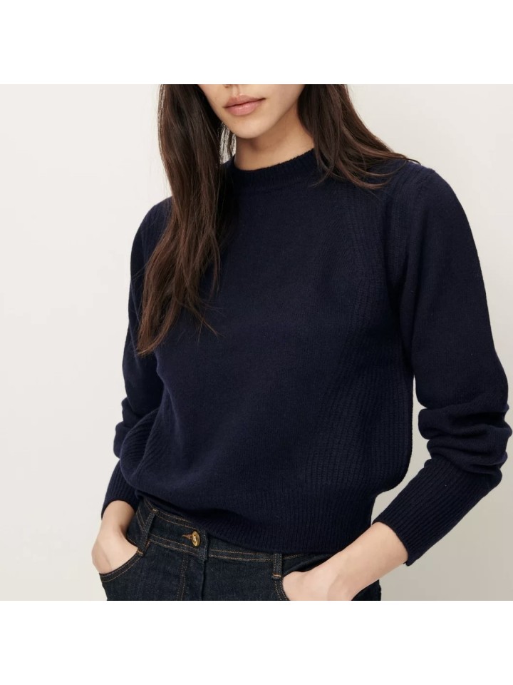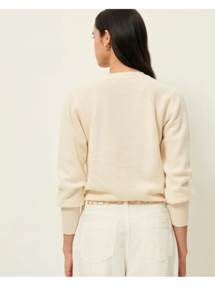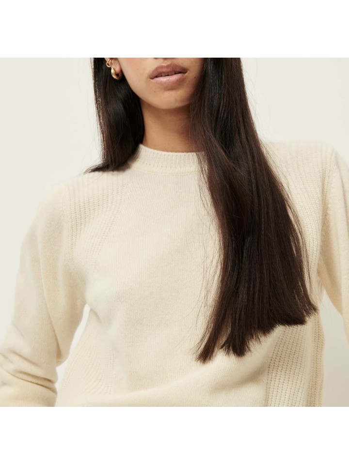 Jersey corto ajustado en punto de malla con detalle de punto canalé perlado en las sisa, tejido en Italia.