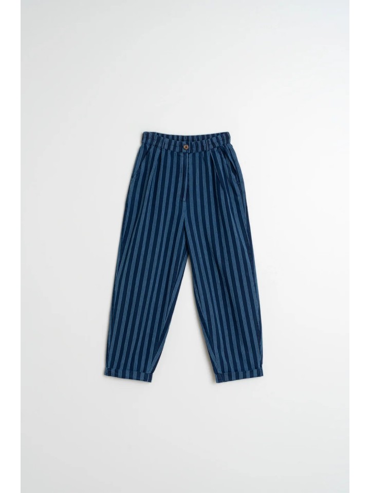 Pantalón de estilo baggy con cintura de goma y cierre de cremallera y botón.
