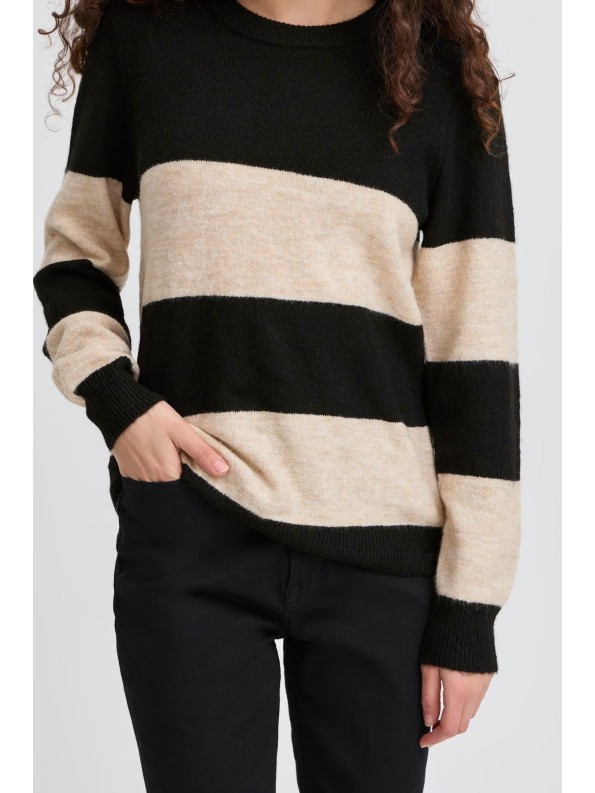 Jersey de punto de aspecto lanoso suave con manga larga y cuello redondo.