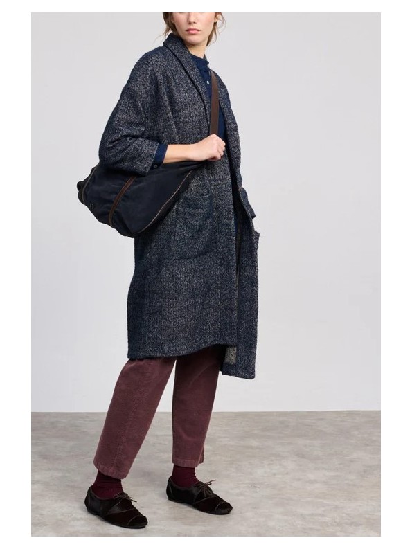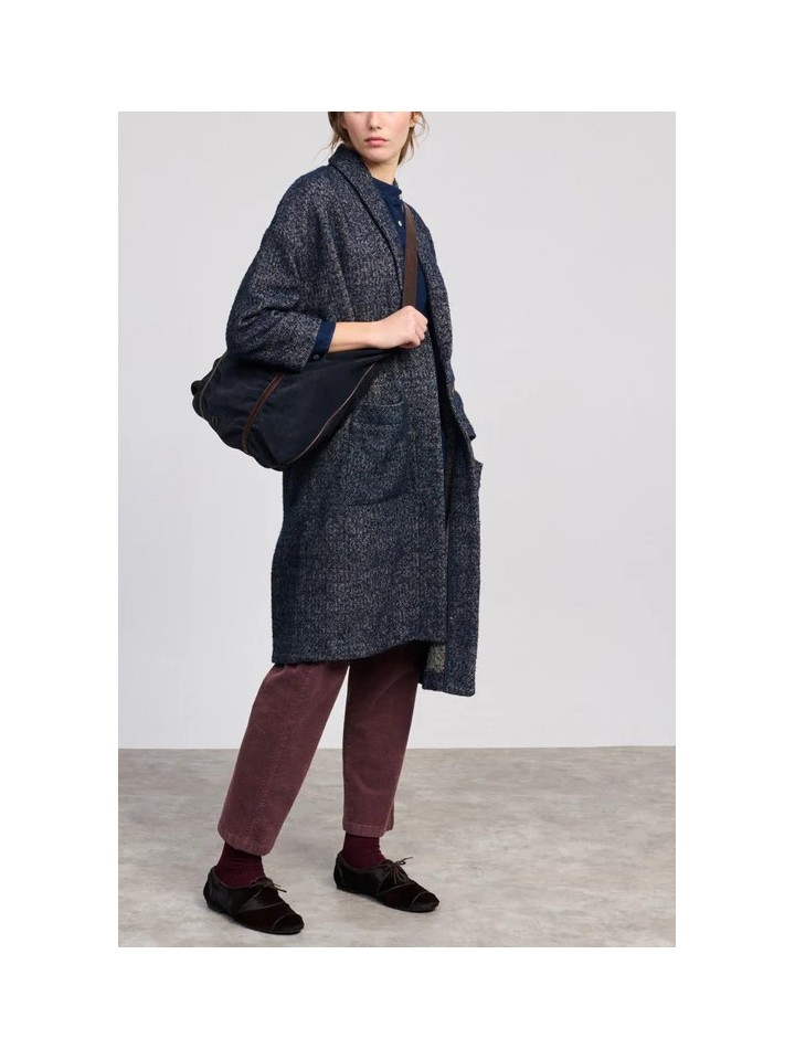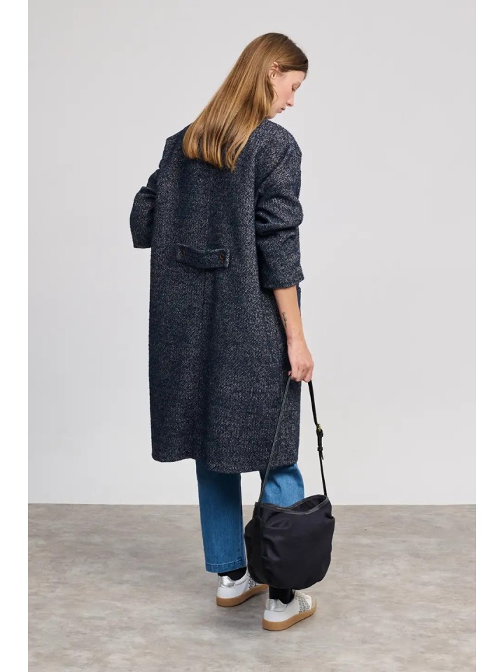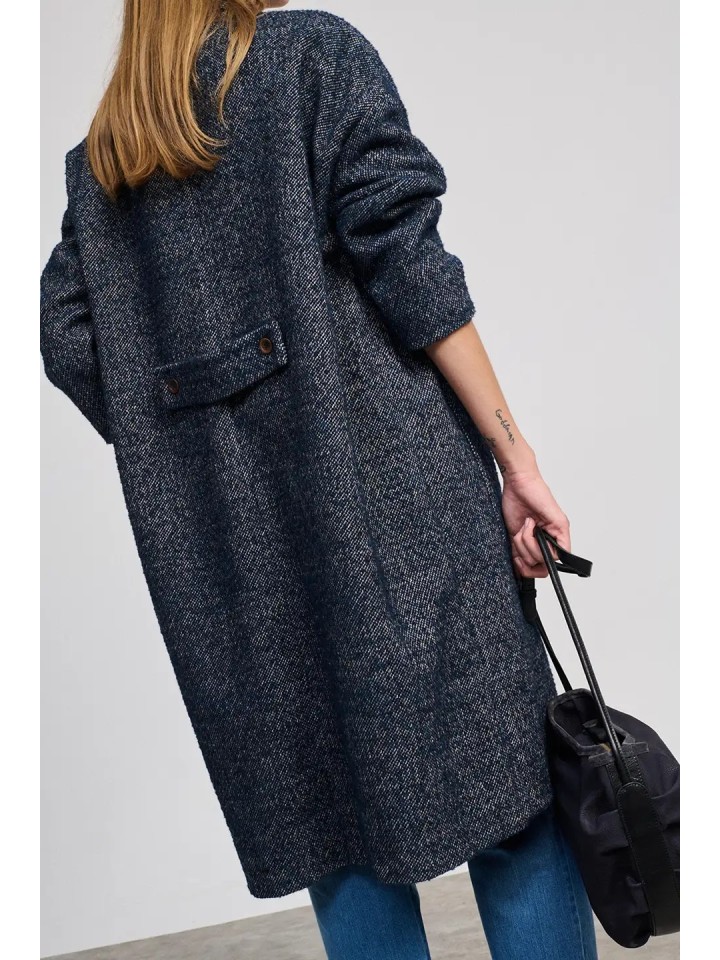Abrigo oversize jaspeado con solapa.