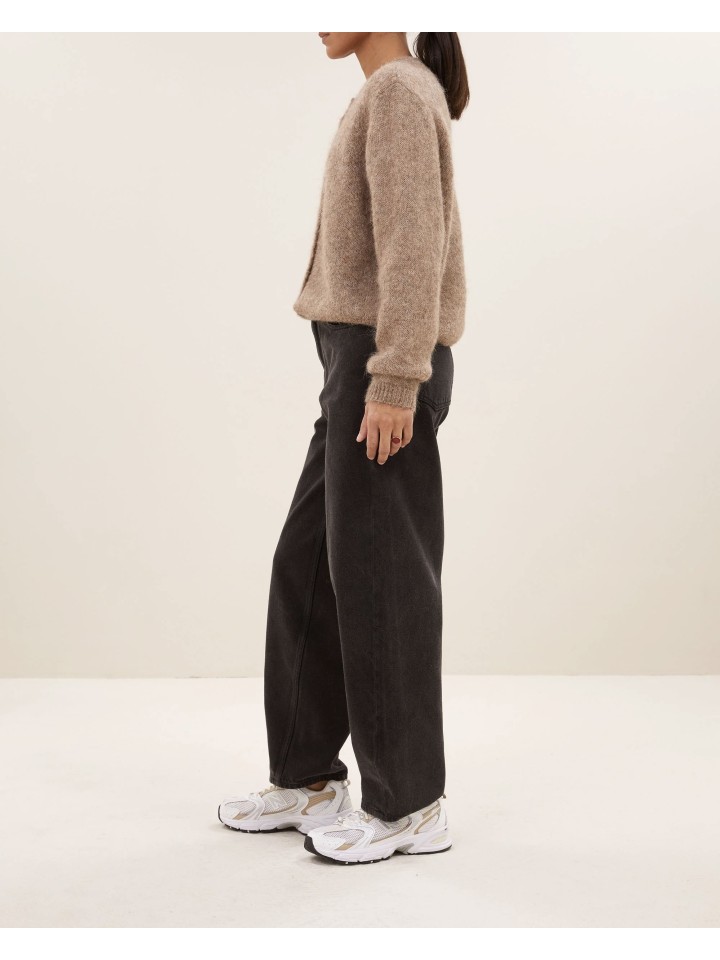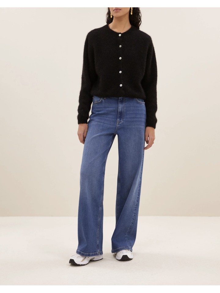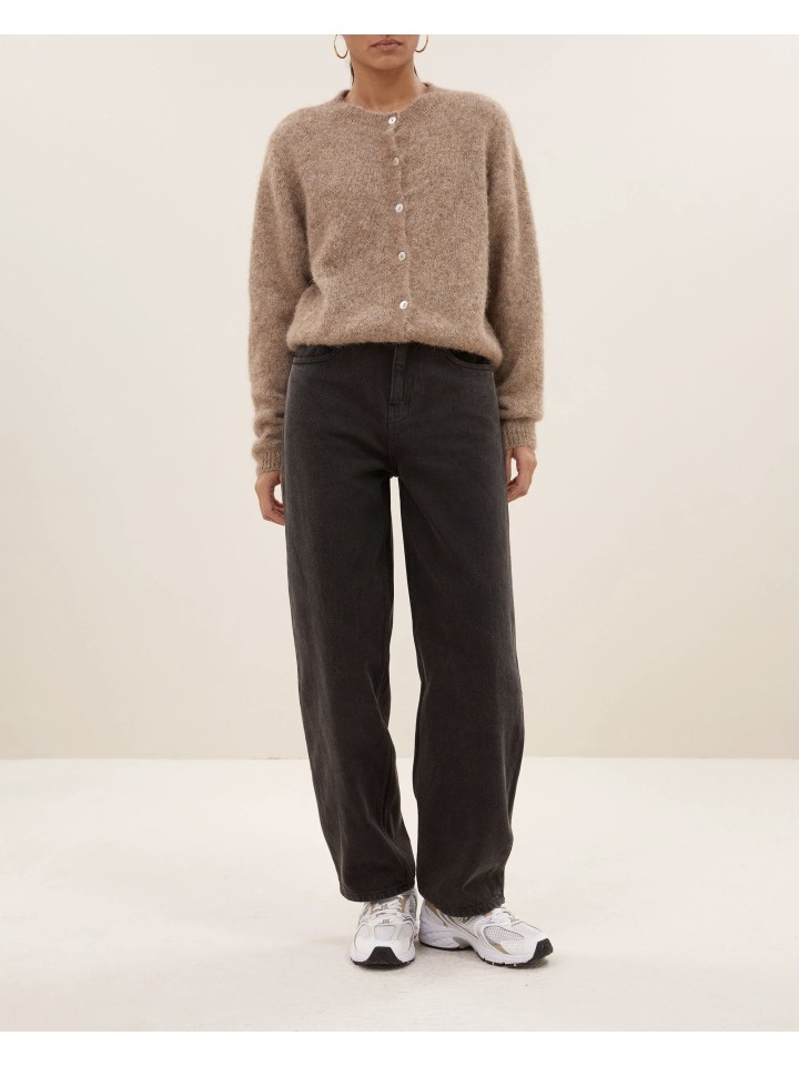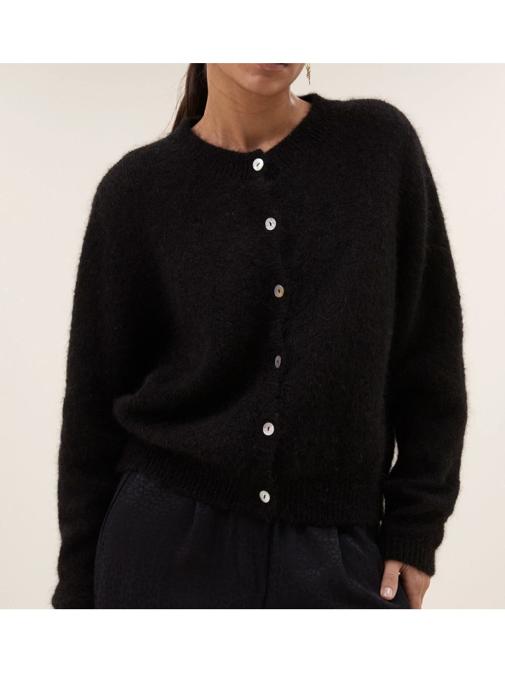 Chaquet de lana de manga larga con cierre de botones y cuello redondo.