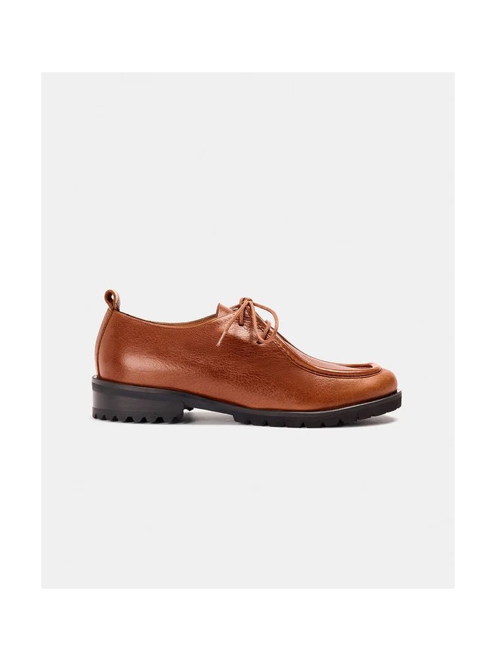 Modelo de zapato en piel tipo wallabee. Cierre con cordones al tono. Puntera redondeada. Forro de piel de vacuno. Plantilla extraíble con foam. Altura total del piso 2.5cm.