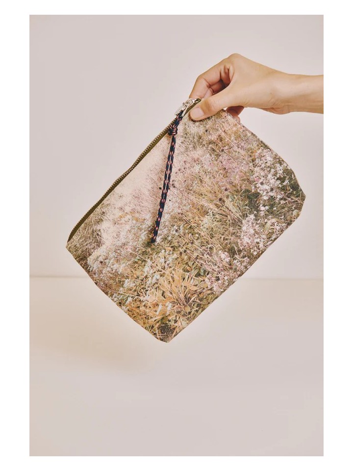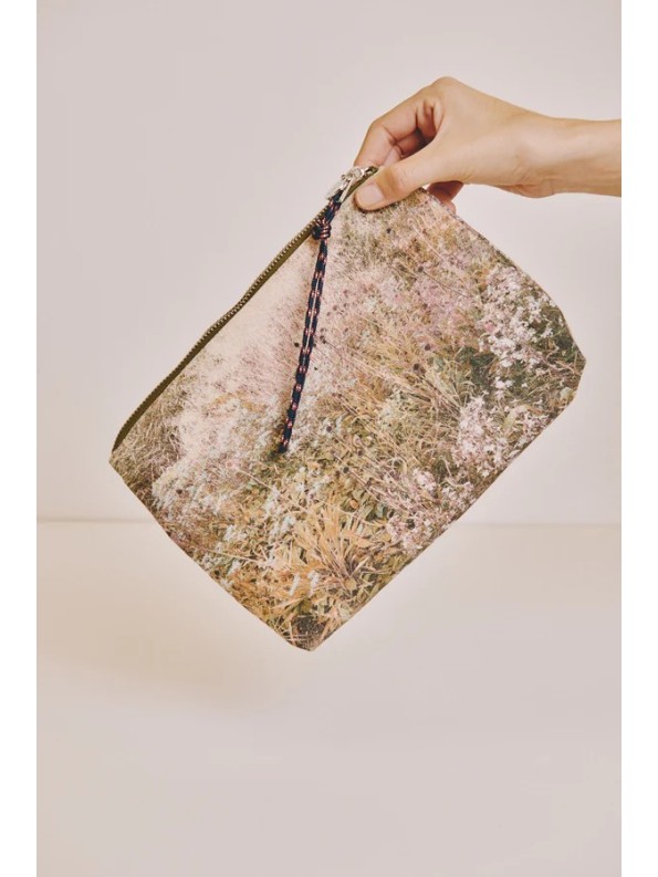 Bolso de mano 100% algodón estampado. Cierre con cremallera.
