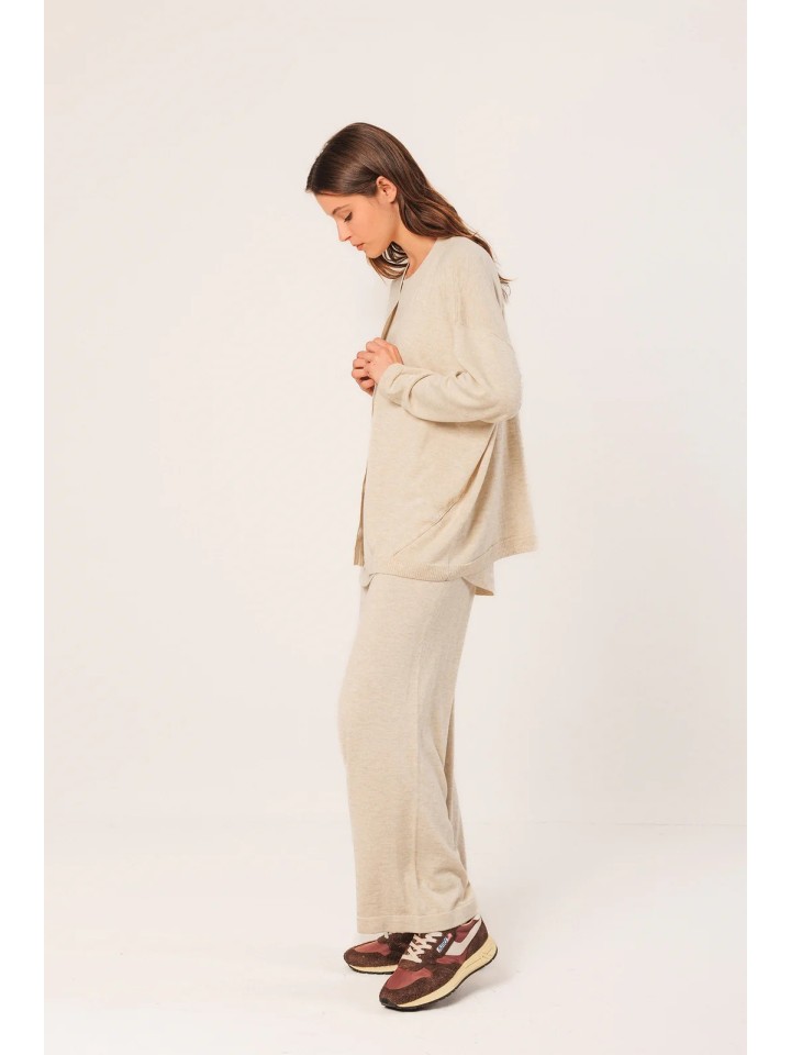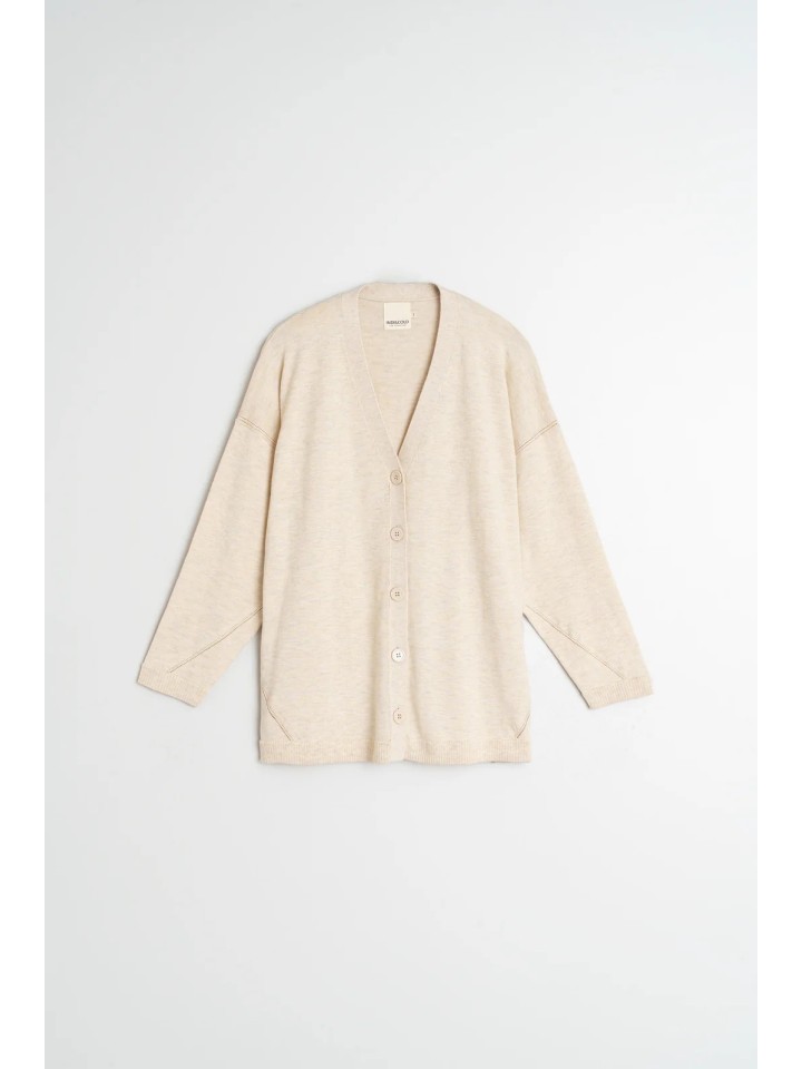 Chaqueta de escote en pico confeccionada en un punto de lana combinada con hilo de origen marino.