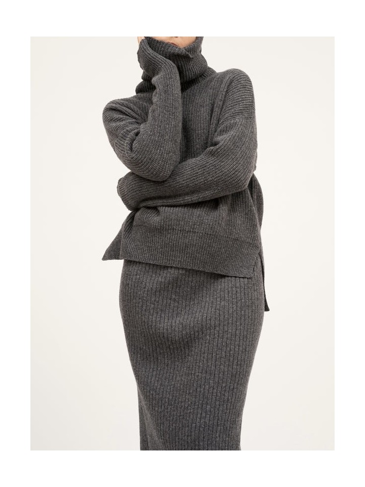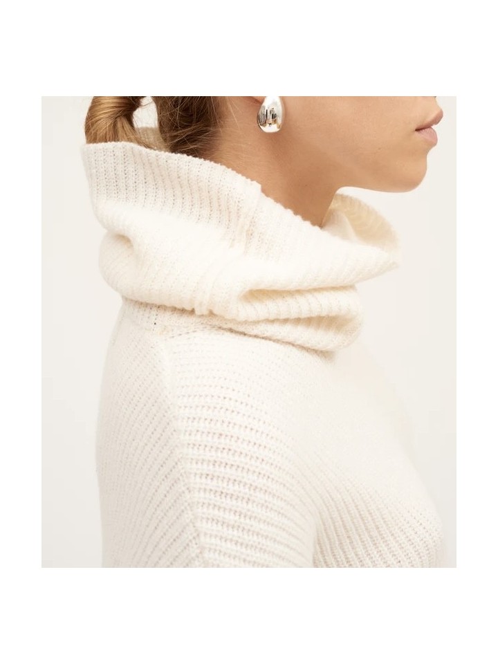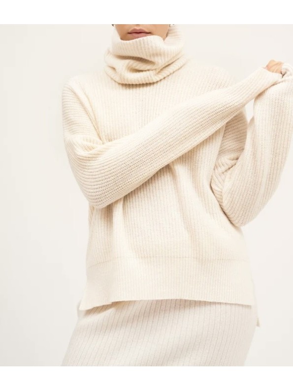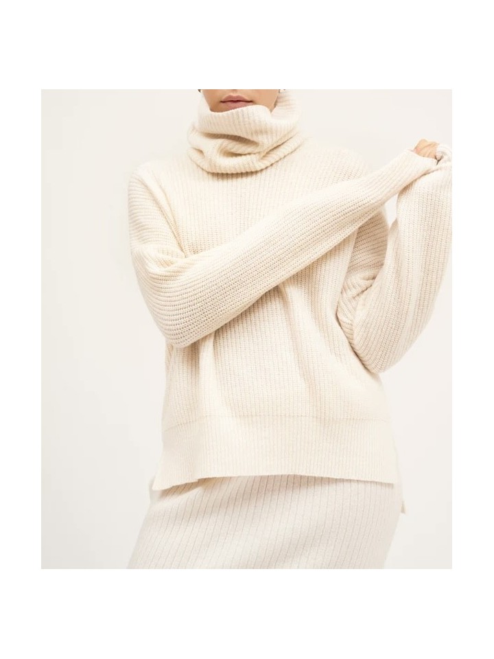 Jersey con un amplio cuello vuelto. Más largo por detrás que por delante y aberturas laterales.