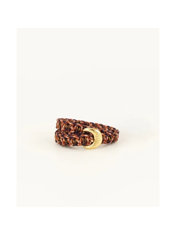 Cinturón en macramé de cuerda. Hebilla dorada con efecto texturizado y estrellas en relieve. La hebilla es un diseño único de Sessun.