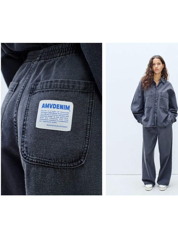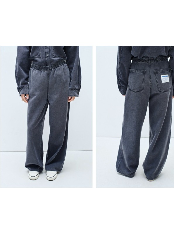 Pantalón amplio en tejido denim lavado muy suave con cintura de goma.