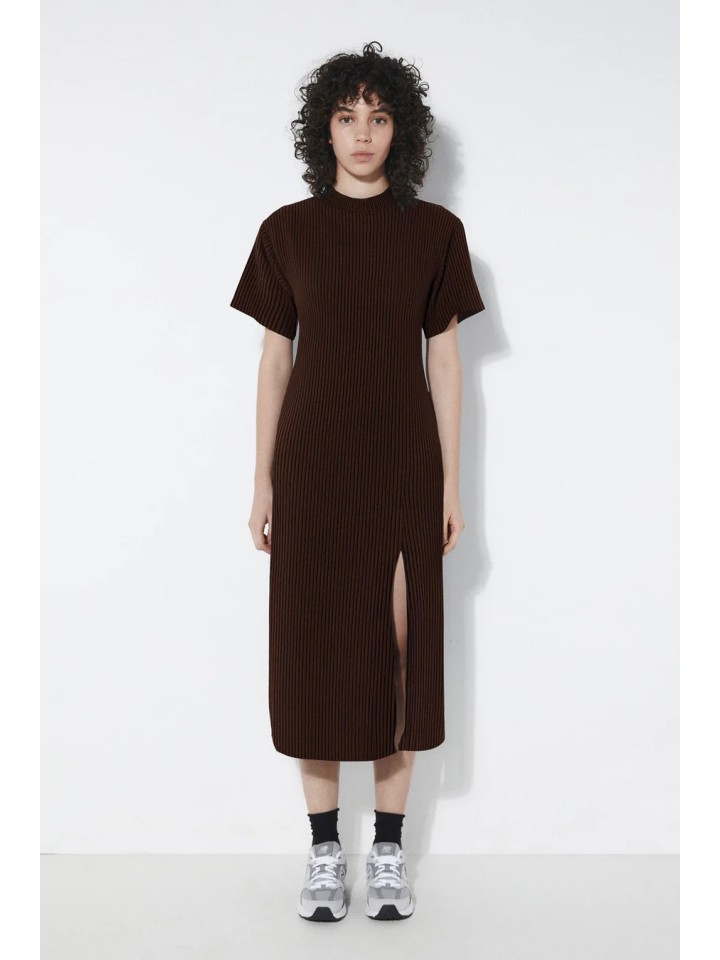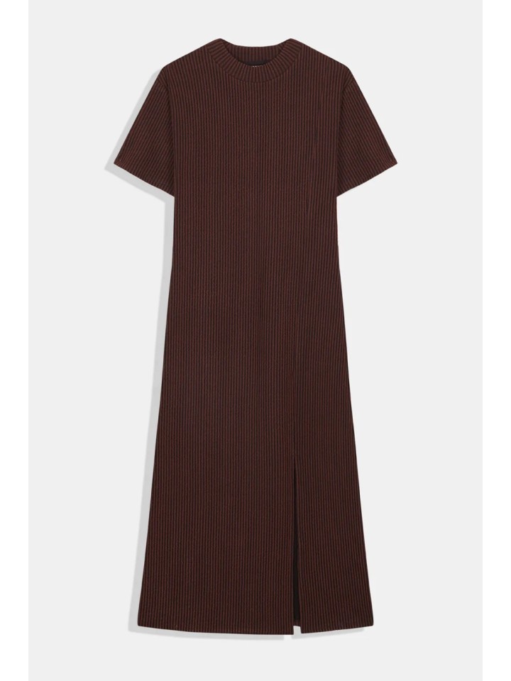 Vestido largo con una silueta ligeramente estilizada. Las mangas son holgadas y llegan justo por encima del codo. Abertura en el lado izquierdo.
