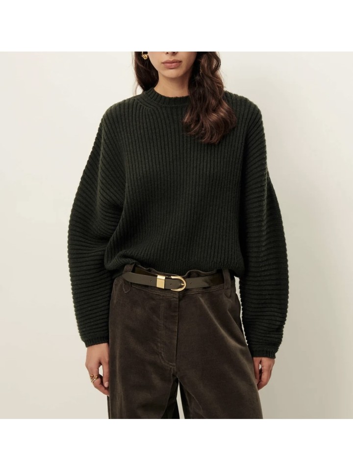 Jersey oversized de cuello redondo. Manga larga abullonada.