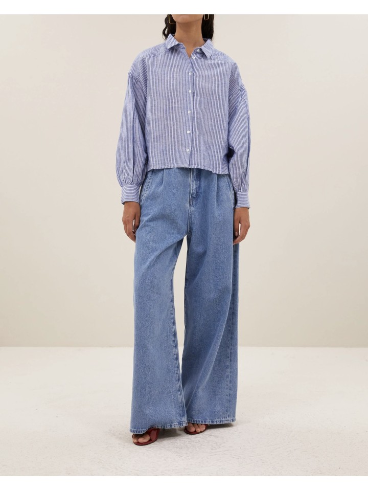 Camisa corta con mangas voluminosas en rayas.