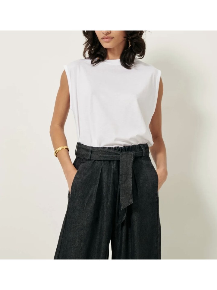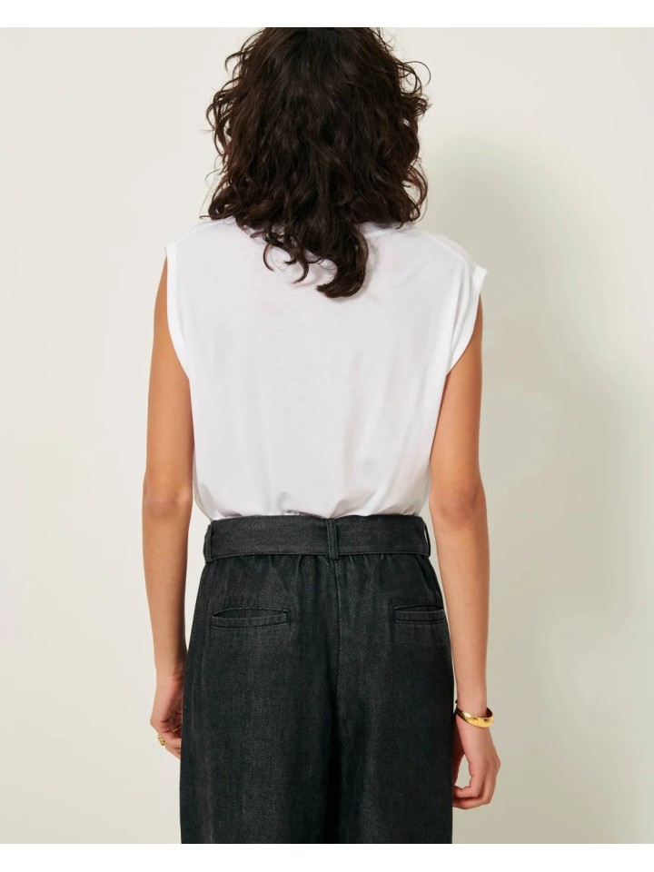 Camiseta de cuello redondo sin mangas en puto fluido.
