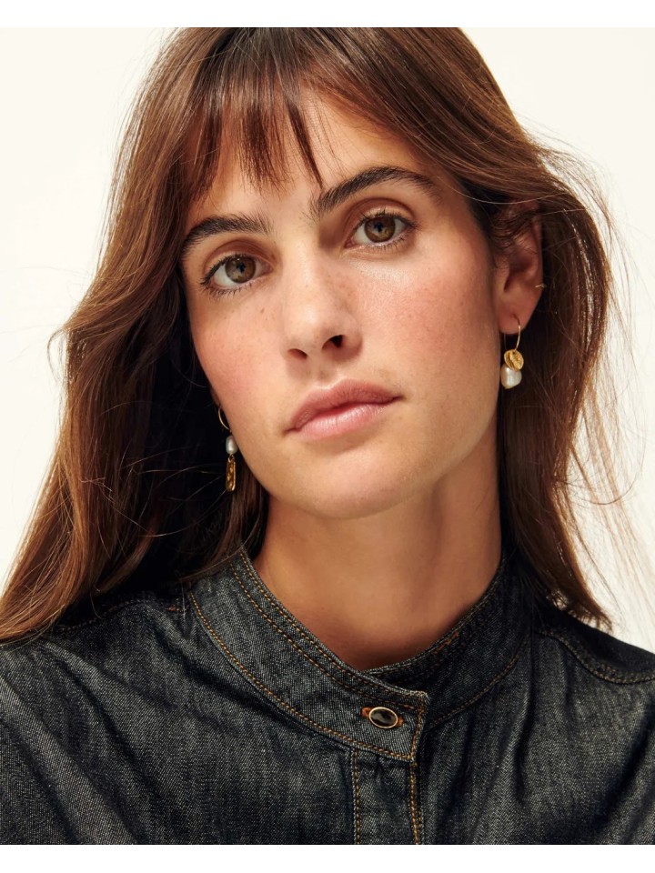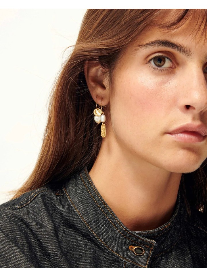 Pequeños pendientes de aro con medallón y perla de agua dulce.