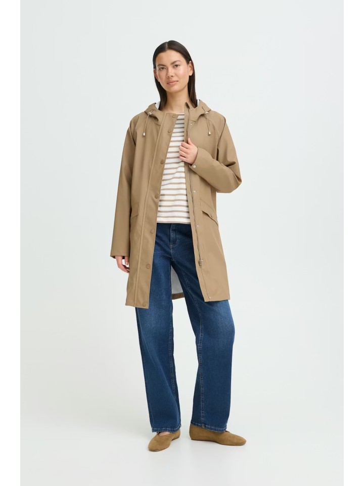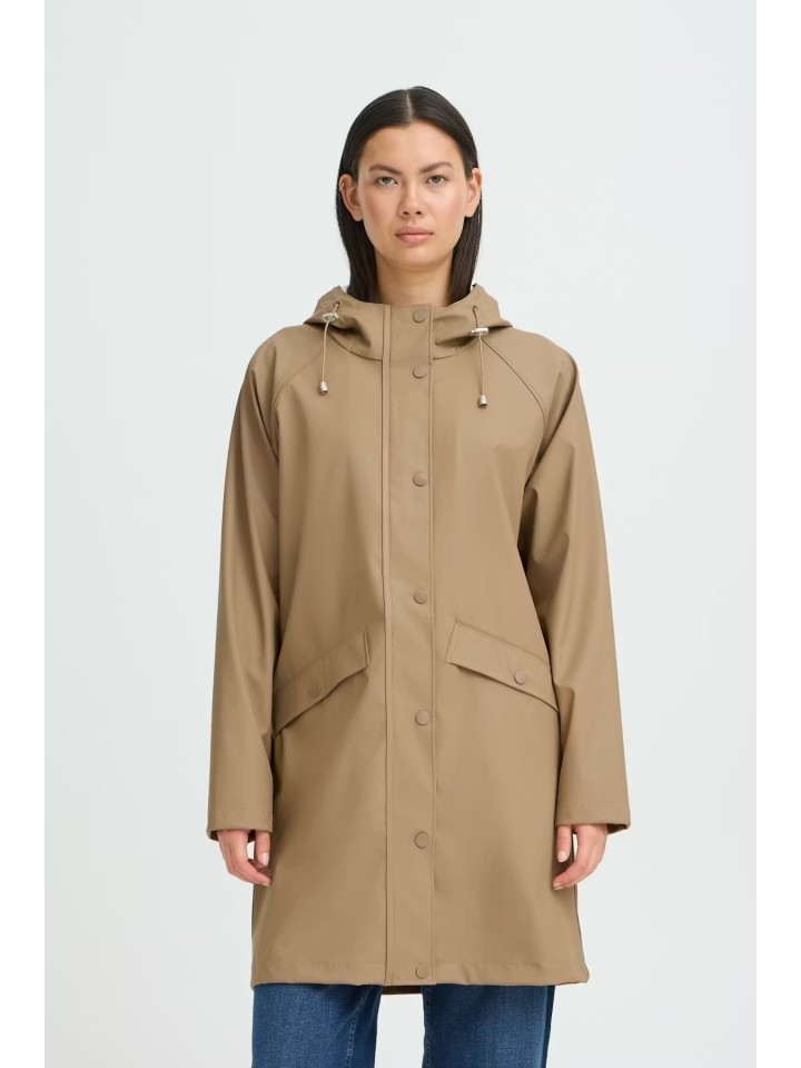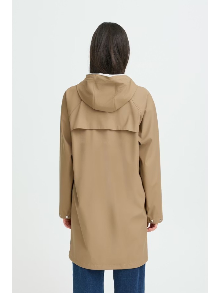 Chubasquero hasta la rodilla con capucha.