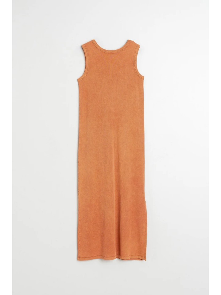 Maxi vestido de algodón en tirantes. Escote redondo con espalda más pronunciada. Abertura lateral.