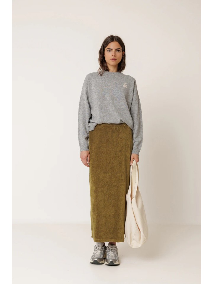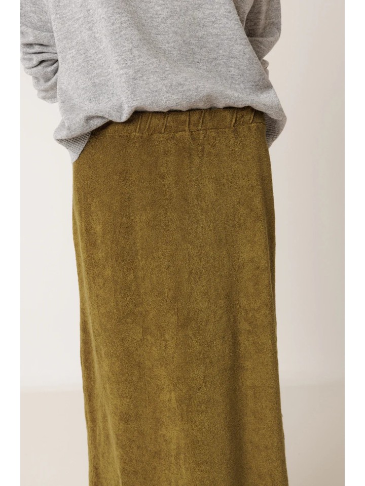 Falda de rizo recta con abertura lateral y cintura de goma.