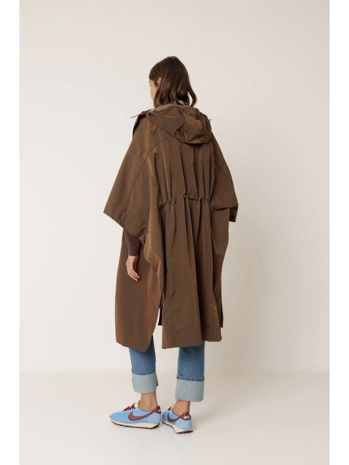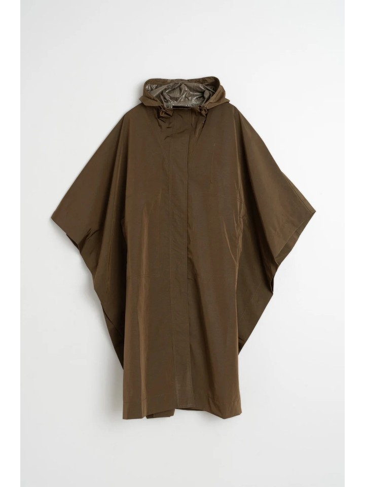 Capa impermeable con capucha. Hombro caído, construcción amplia tipo murciélago.