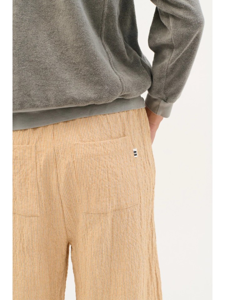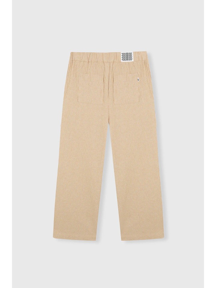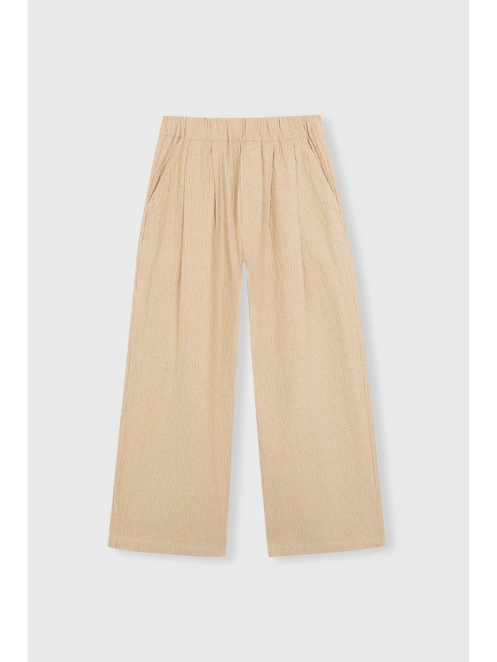 Pantalón ancho de tiro medio con pinzas y cintura de goma.