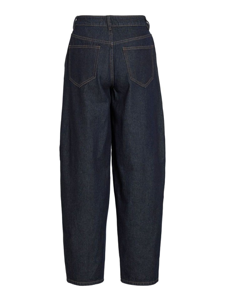 Pantalón denim barrel con parches delanteros.