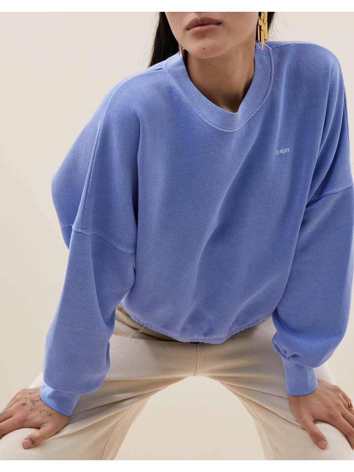 Sudadera holgada con cuello redondo y manga larga. Cortes a la espalda.