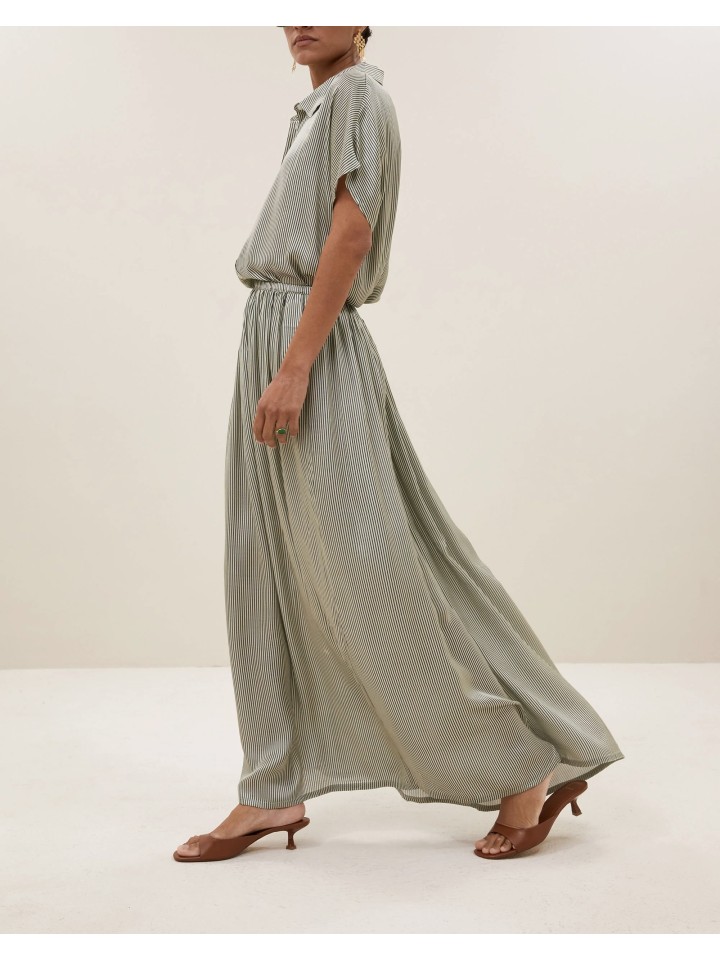 Camisa de manga corta con mucha caída en rayas finas.