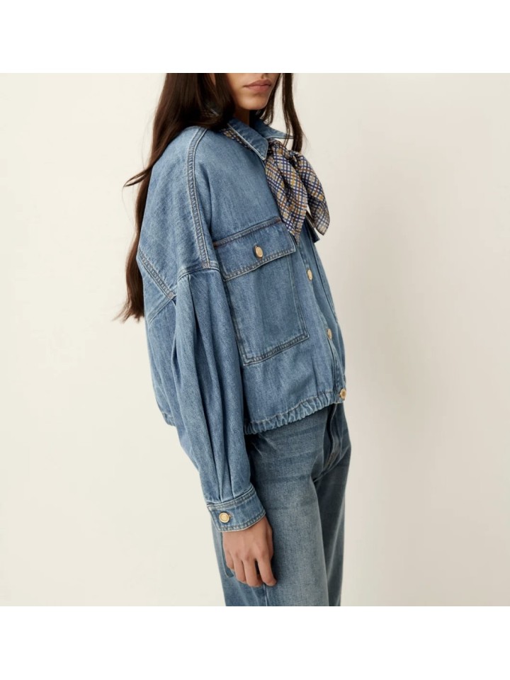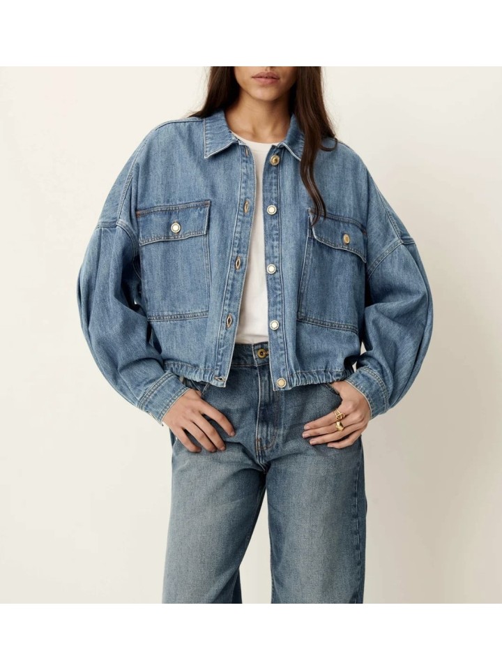 Chaqueta corta ajustada en la cintura en tejido denim.