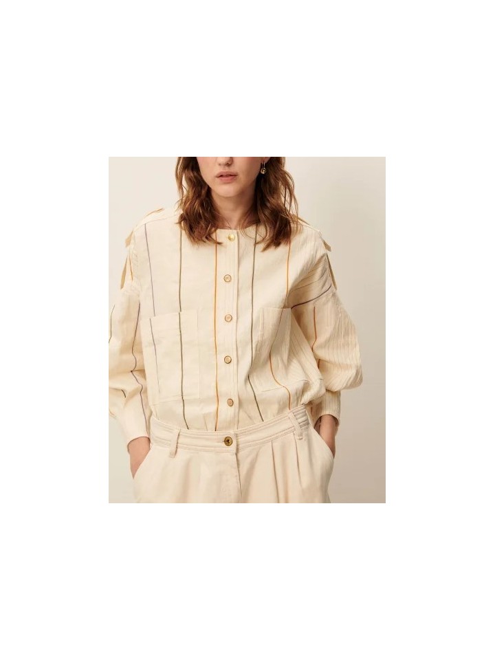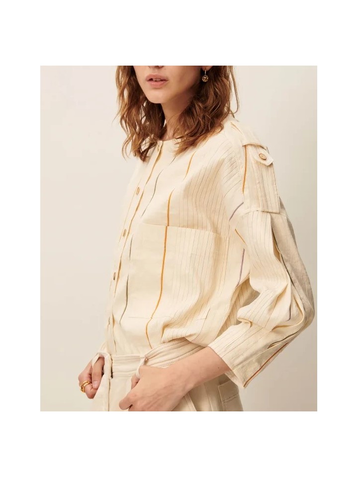 Cazadora en lona gruesa de algodón y lino con motivo de rayas fantasía exclusivo de Sessun.
