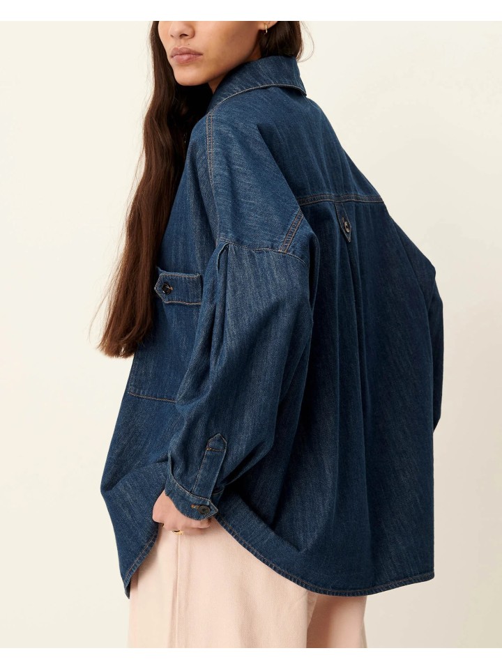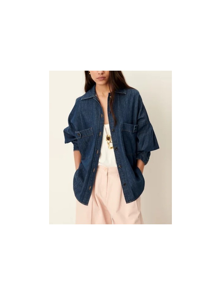 Sobrecamisa amplia de estilo utilitario en tejido denim flexible.