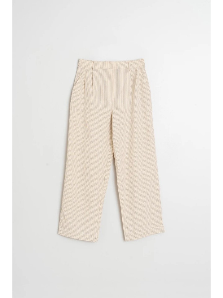 Pantalón de pinzas con raya diplomática confeccionado en algodón orgánico.